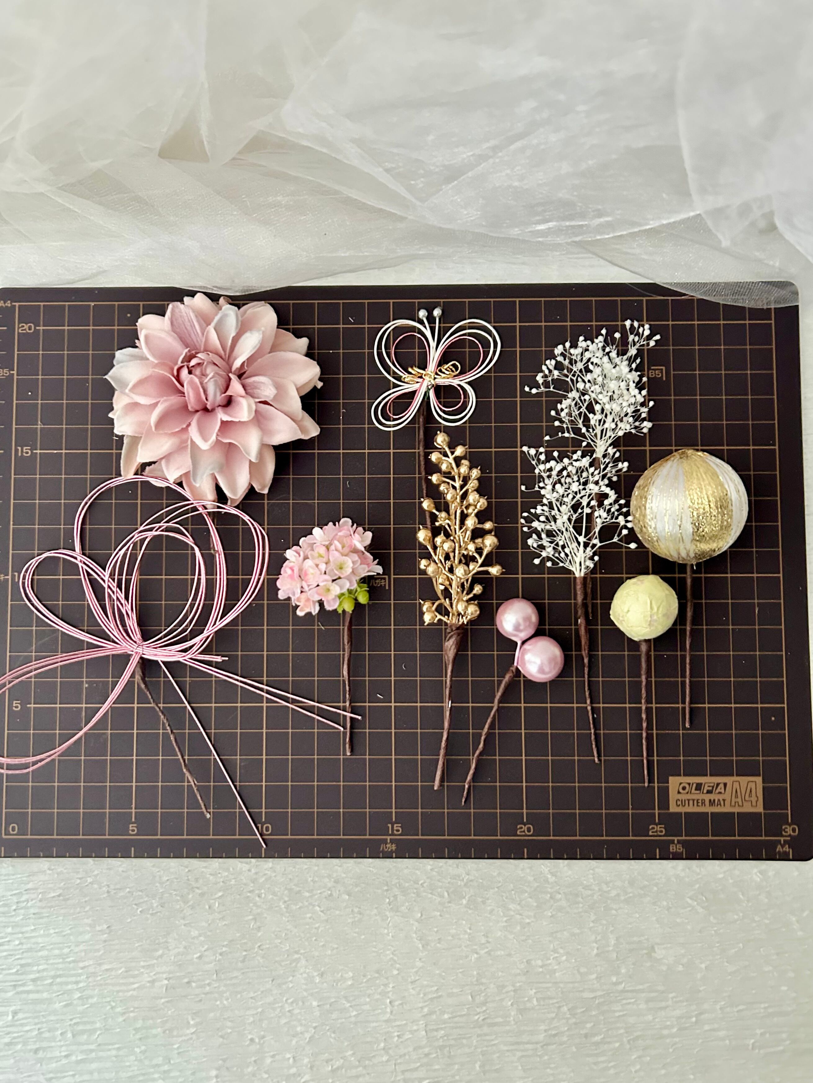 使用素材:アーティフィシャルフラワー、水引他