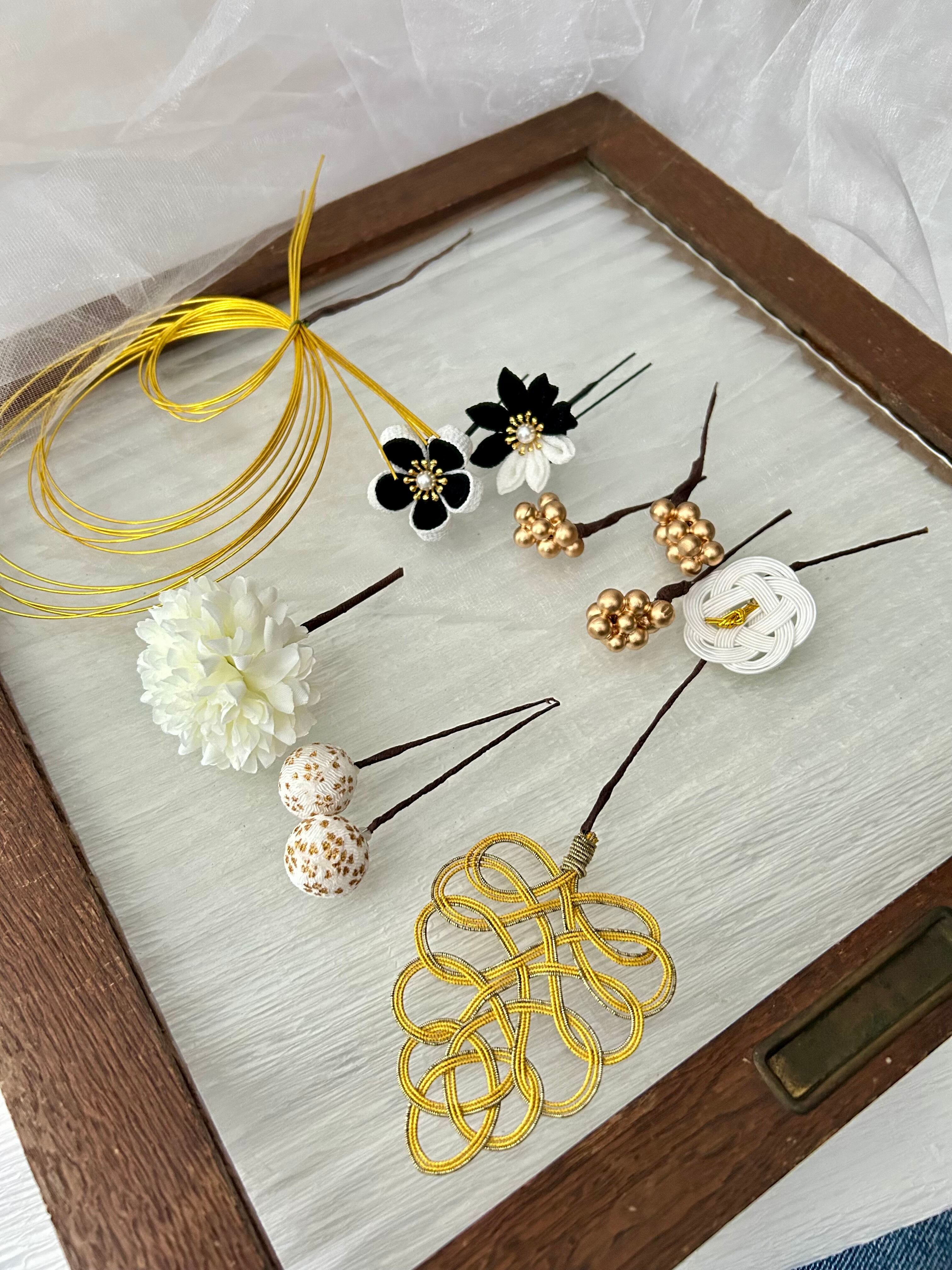エレガントな白黒の梅の花をあしらったフラワーヘアーアクセサリーは、つまみ細工作者KAZUYOとのコラボレーションによって生まれた特別なアイテムです。シンプルながらも品格のあるデザインが、さりげなく美しさを引き立てます。卒業式や成人式、結婚式などの大切な瞬間を、華やかに演出することでしょう。カジュアルからフォーマルまで、幅広いスタイルにフィットするこのアクセサリーは、魅力をさらに際立たせてくれます。