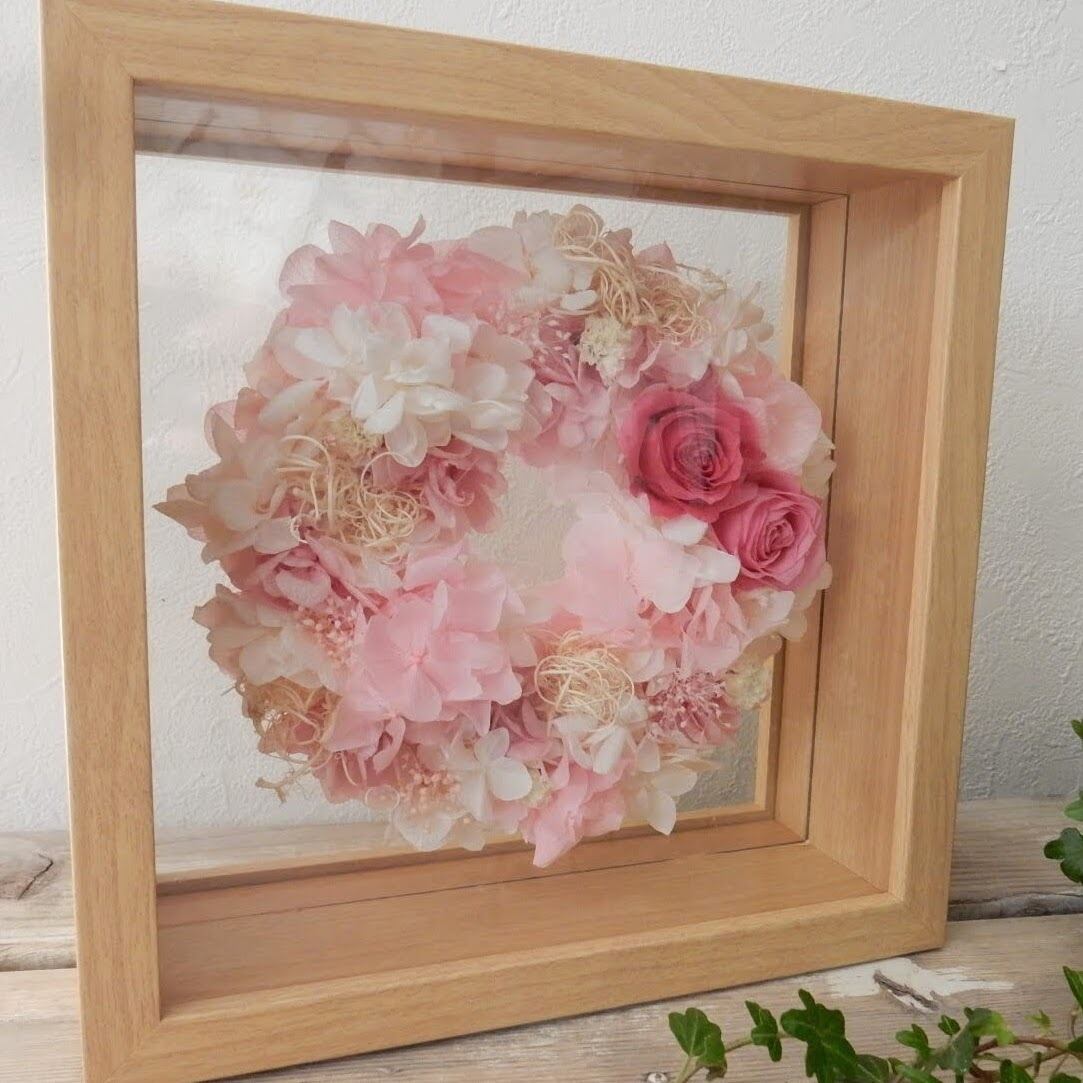 ≪プリザーブドフラワー≫ フレームフラワーLサイズ Pink×white