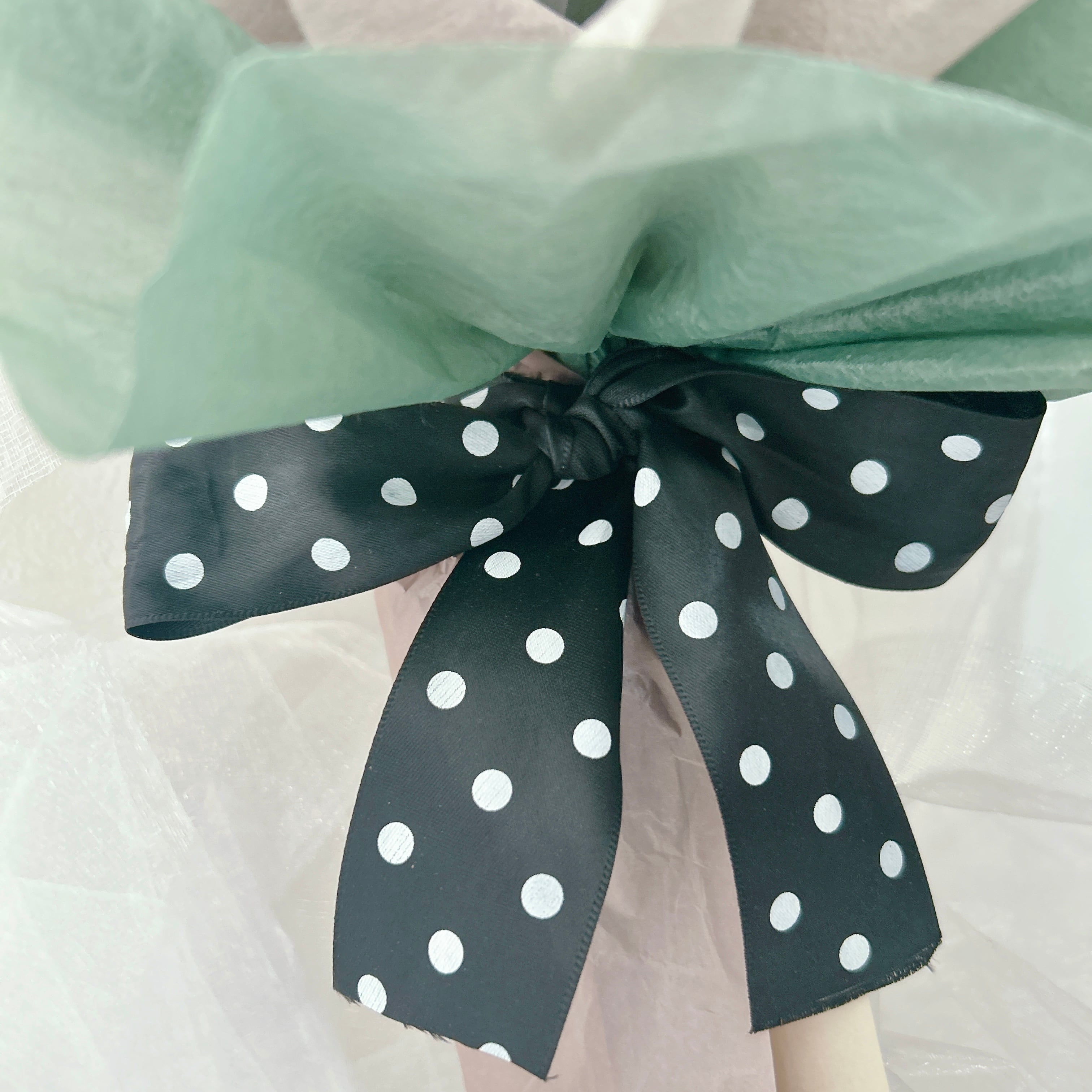 まるでお花がドレスを纏っているかのように、エレガントなラッピングが施されています。